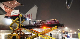 200e atterrissage d’un avion transportant équipements militaires et munitions