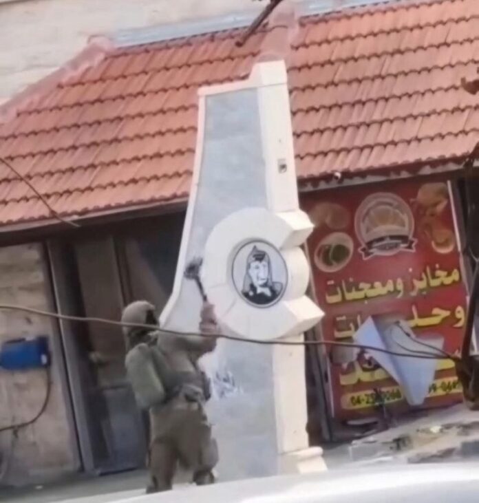 Une tempête a éclaté aujourd’hui suite à la décision du commandant de la région Centre, Avi Bluth, et du commandant de la brigade Menashe, Matan Feldman, de renvoyer un soldat réserviste opérant dans le village de Zababdeh, dans la zone de Jénine. Le soldat, qui avait identifié lors d’une opération de lutte contre le terrorisme un monument à l’effigie du « maître-terroriste » Yasser Arafat, a tenté de le détruire à l’aide d’un marteau — un acte qui a conduit à la fin immédiate de son service.