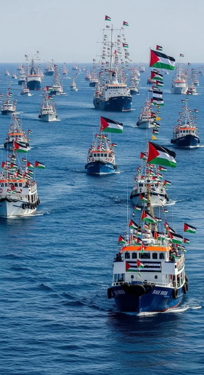 Environ 500 activistes avaient embarqué sur une cinquantaine de navires partis de Gênes (30 août), Barcelone (31 août), Tunis et Catane (4 septembre). Ils affirmaient transporter plusieurs tonnes d’aide humanitaire – médicaments et nourriture – destinées directement à Gaza, sans passer par Israël.