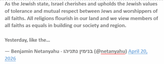 « En tant qu’État juif, Israël protège et défend les valeurs juives de tolérance et de respect mutuel entre les Juifs et les croyants de toutes les religions », a écrit Netanyahu. « Toutes les religions prospèrent dans notre pays, et nous considérons les membres de toutes les religions comme ayant des droits égaux dans la construction de notre société et de notre région. Hier, comme la grande majorité des Israéliens, j’ai été choqué et attristé d’apprendre qu’un soldat de Tsahal avait endommagé une icône religieuse catholique dans le sud du Liban. »