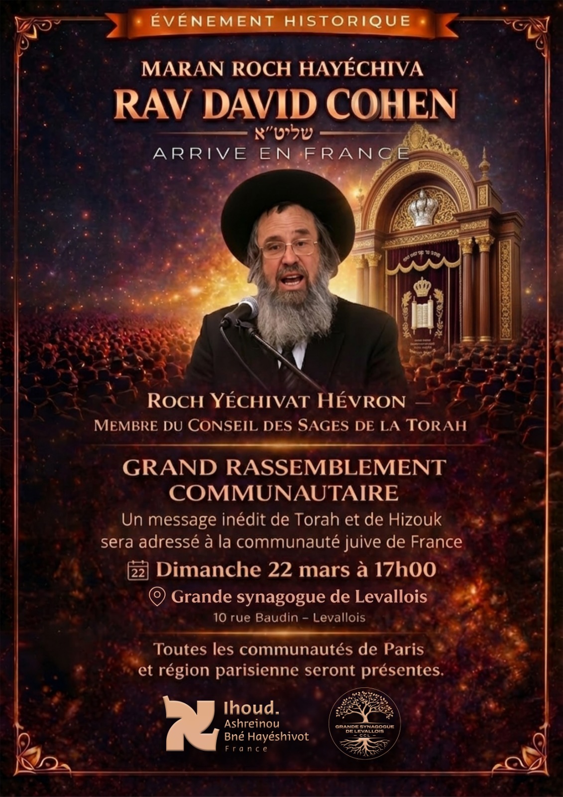 Dimanche, une grande réunion s’est tenue à Levallois, sous l’égide du « Igoud Ashrénou Bené haYechivoth », et a attiré un très grand public de toute la région parisienne.